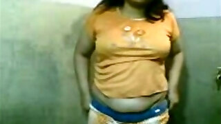 Indian amateur Bbw lady in the bathroom stripping on cam