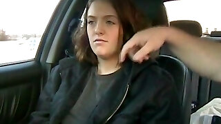 Tasty looking Czech cutie welcomes tongue poke on the backseat of cab