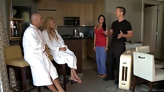 Big Black Cock Pounds Plumper, While Her Hubby Cooks A Dinner For Them