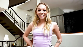 schlanke blonde hottie lutscht und reitet den großen schwanz ihres freundes in hausgemachtem video