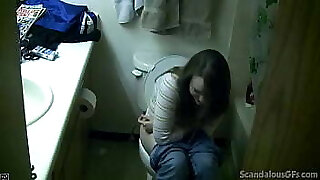 verheiratete frau, die ihre muschi mit toiletten-masturbation nass macht