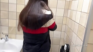 Selfsuck und Cumshot in der Öffentlichen Toilette!