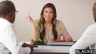 A petite lady comes for a job interview and meet a big black dude with giant dark-hued cock.