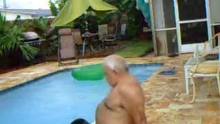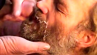 Old grey-bearded fellow pounds teen girl when her own boyfriend comes and joins