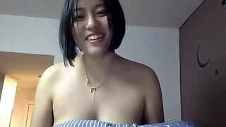 Bad Asian bitch, Kotone Kishi loves to rub her small tits, while her man is drilling her hairy pussy