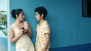 voluttuosa dark-hued milf miele in calze a rete abbigliamento scopa un giovane ragazzo