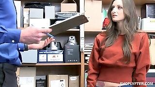 bionda taccheggiatore ha a soffiare e scopare lui per evitare problemi