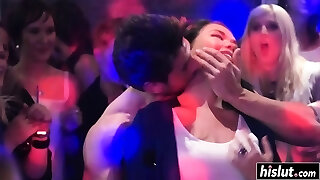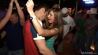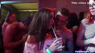 Happy damsels in short skirts never mind gargling and riding dicks in the club