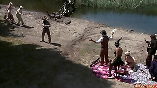 Outdoors group romp party with naughty Natasha Marley and her friends