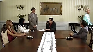 Lustful BBW secretary satiates boss and his fucking partner in front of bodyguard
