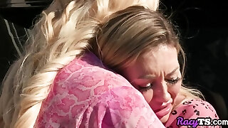 Teen Emma Rosie is analed by huge-boobed tgirl Jade Venus large cock