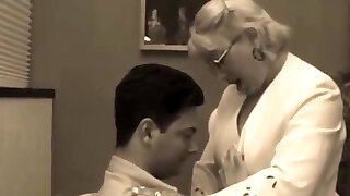 Whorish blond teacher satisfies her student with a skillful blowjob