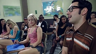 Naughty chick students get the whole class into a gangbang