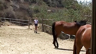 Brunette dildos backside with horse dildo