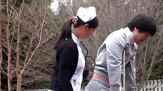 Hardcore outdoor fucking with a Japanese nurse wearing undergarments