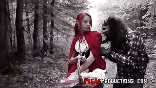 The crimson riding hood Brind Love gets pulverized by woodcutter outdoors