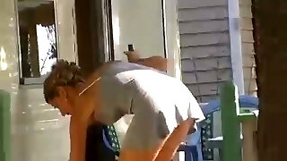 Spying on my sexy neighbor with thick delicious boobs
