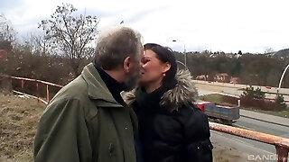 Gorgeous Czech porn industry star gets fucked by a horny old chap outdoors
