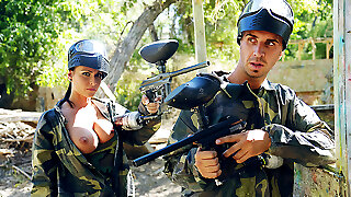 Beautiful fresh girl with mouth-watering titties Renata Fox rides big man-meat outdoors