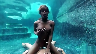Buxom dark-hued MILF Diamond Monroe fucks in a swimming pool