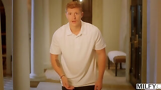 Pretty Curvy Blonde Babysitter Got Stuck In the Kitchen Bury & Fucked By Her DILF Boss